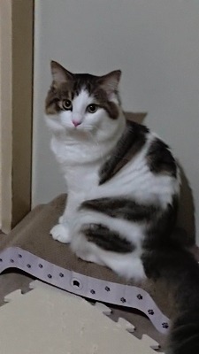 ではなく、ここに座って、「早く構ってくれにゃ」と、飼い主をよびつけます。