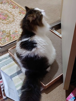可愛くちょこんと座って、私を呼びつけます。寂しい鳴き声だったり、遊べやァ~って言うような大きな声で鳴き声たったり。
