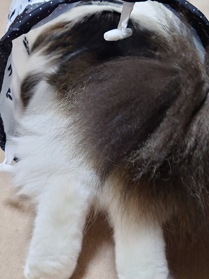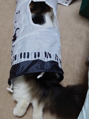 思いの外、うちの子がデカイのか、前の物より小さいため、はみ出しておりますが、それはそれで、可愛いので。