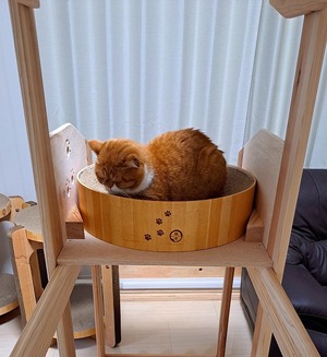 バリバリボウルXLのサイズに合わせたキャットタワーを作って使用しています。XLを上下2段設置できるので、