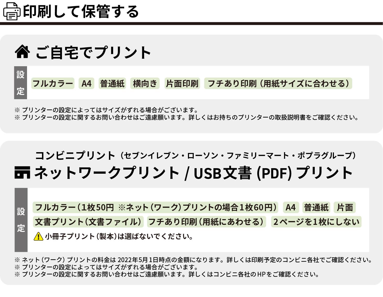 印刷して保管したい→
