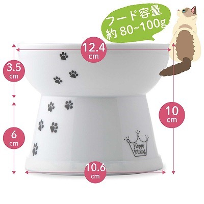 そのためハッピーダイニングは3~5キロのもっとも一般的な体格の猫が食べやすい(吐き戻しを軽減できる)首の角度を保てるような足の高さになっています。