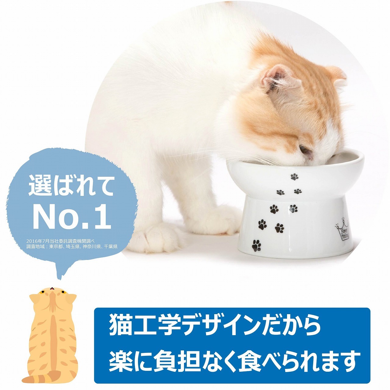 <猫壱>猫用食器 脚付食器 ハッピーダイニング 脚付フードボウル 猫柄 猫ちゃん利用図1