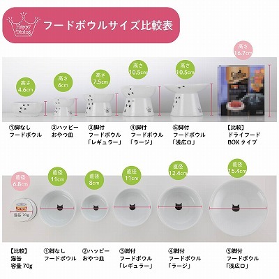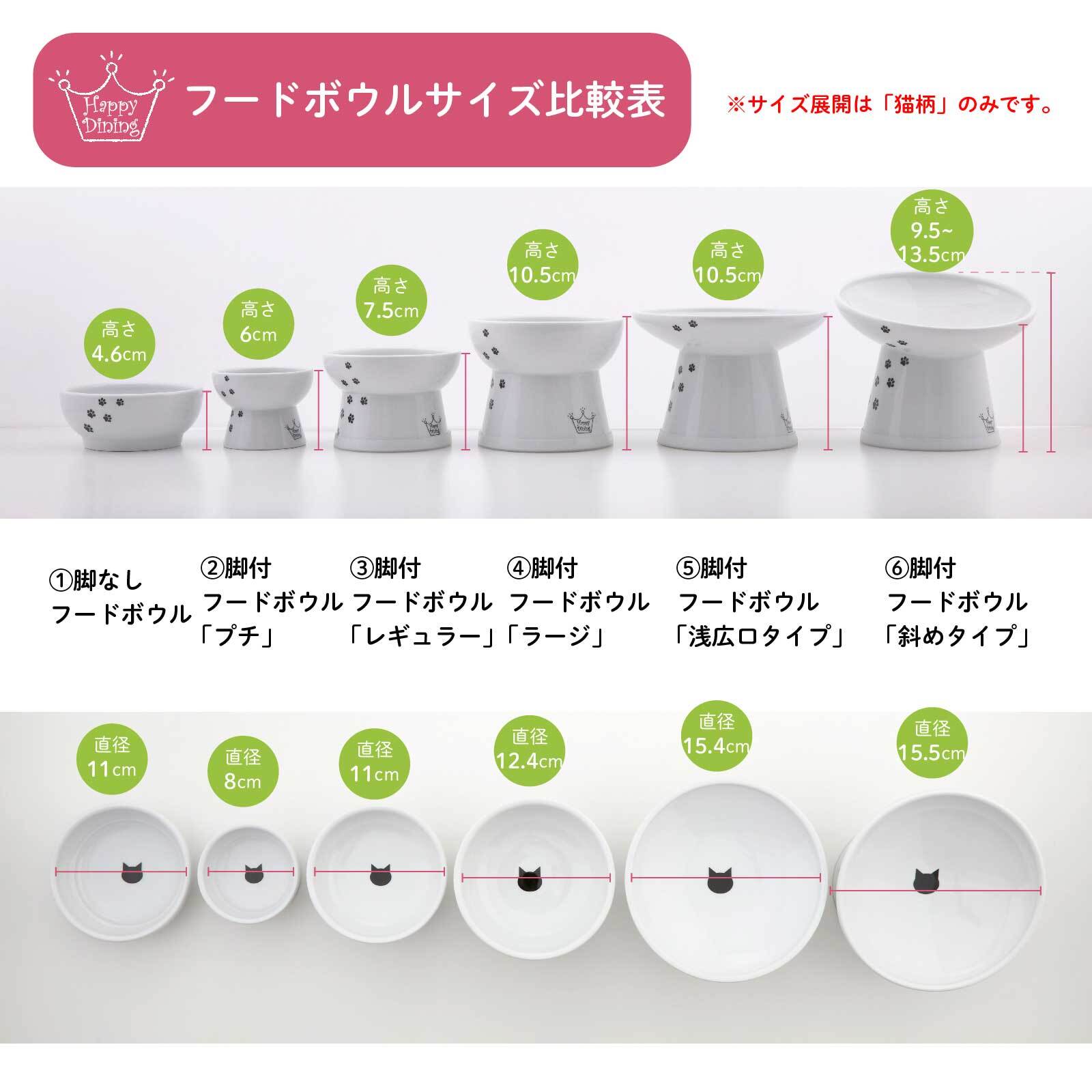 <猫壱>猫用食器 脚付食器 ハッピーダイニング 脚付フードボウル 猫柄 サイズ比較1
