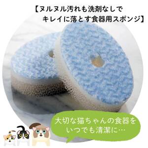 <猫壱>猫用食器 脚付食器 ハッピーダイニング 脚付フードボウル 猫柄 食器スポンジ