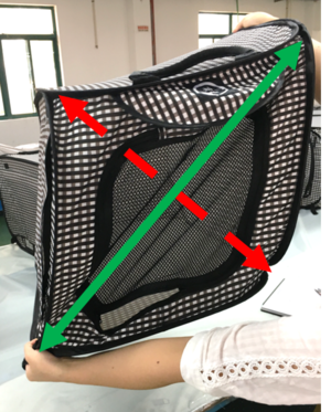 無理にたたんでしまいますと、変形してしまう危険性がございますので、ご注意くださいませ。