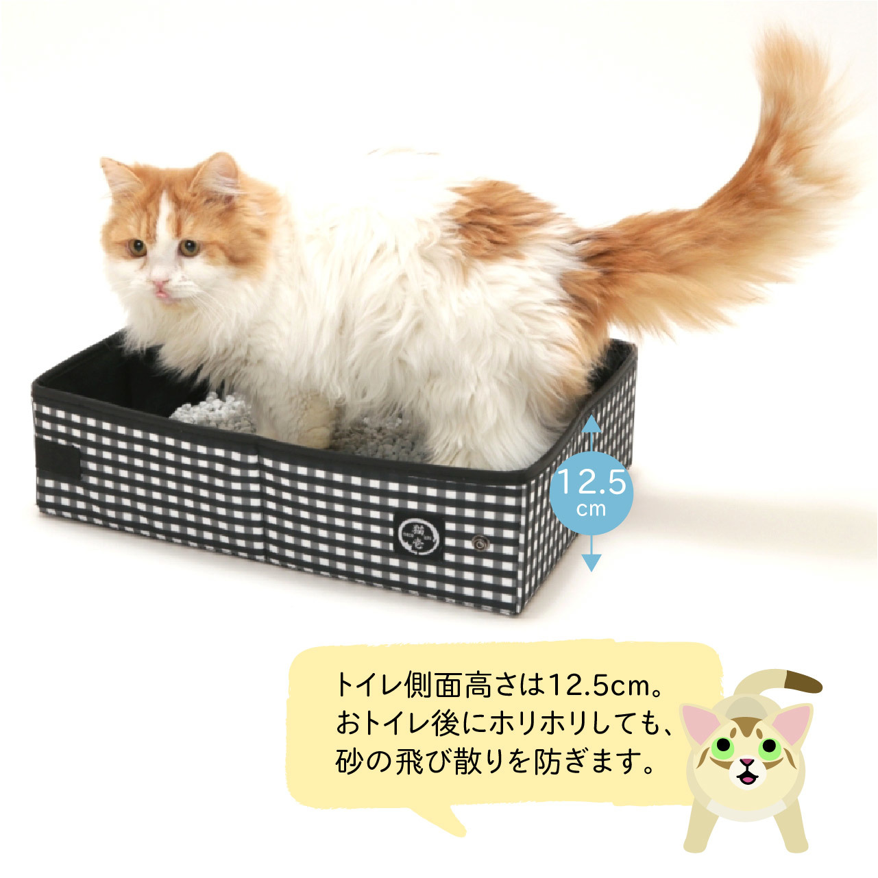 猫がおトイレ後に、猫砂をホリホリしても、猫砂が周囲に飛び散るのを防いでくれます。