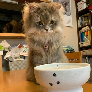 だって、猫もこの脚付きのほうが飲みやすそうにしているんだから。