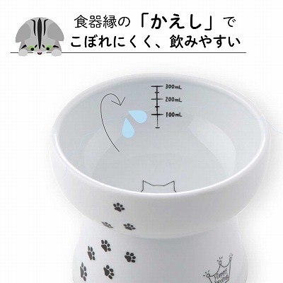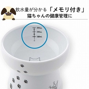 猫用 脚付ウォーターボウル ハイタイプ 猫柄