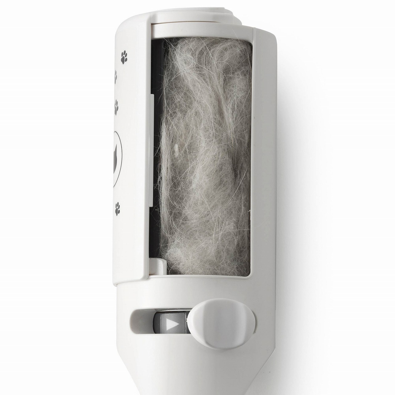 抜け毛やホコリをからめとった後は、本体中央にあるレバーを左右にスライドすると、自動的に内部のダストボックスに収納されます。