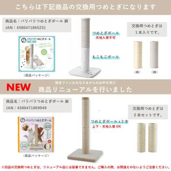こちらの「旧バリバリつめとぎポール」の交換用つめとぎは、リニューアル品には装着できません。