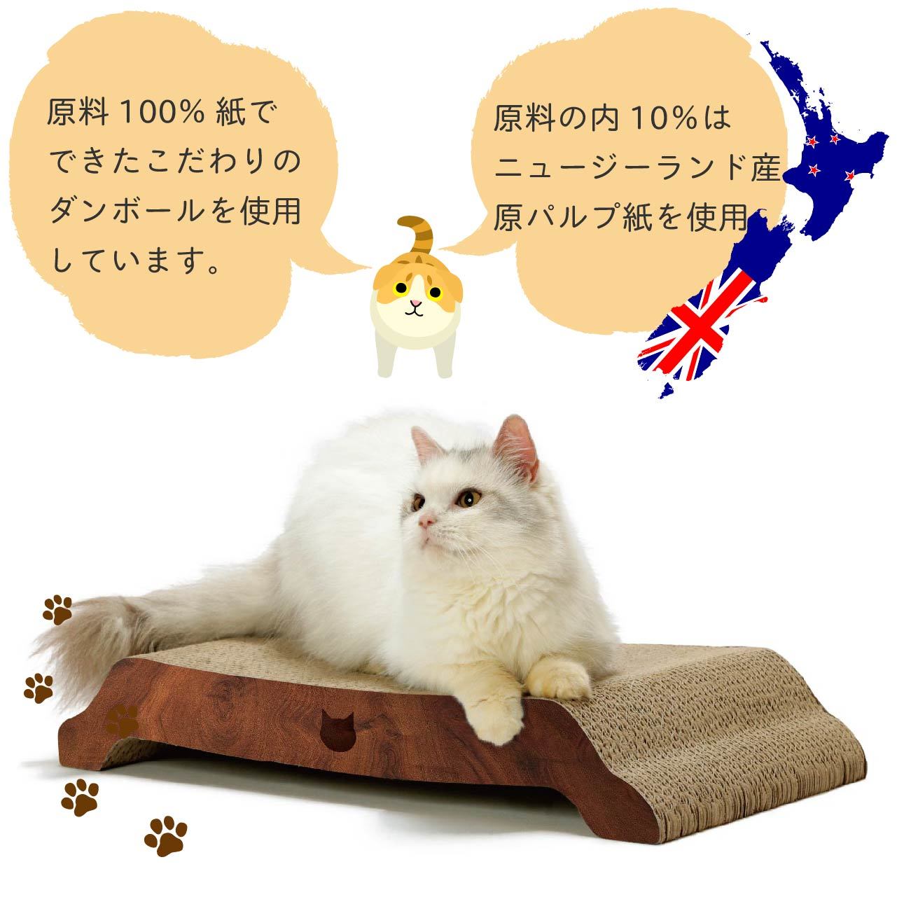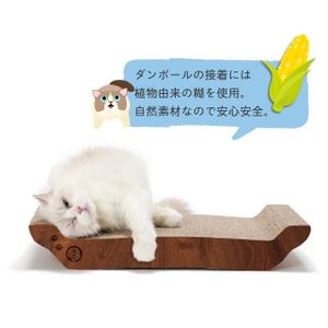 猫ちゃんのカラダが直接触れるつめとぎベッド。つめとぎ後のカスがカラダに付着することを考慮して、つめとぎダンボール部分の接着には化学素材の糊を使用せず、植物由来の糊を使用しています。