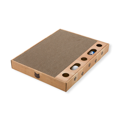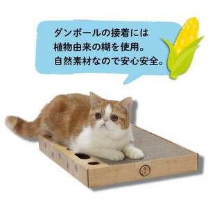 ダンボールつめとぎパッドの横はコロコロボールのスペースになっているので、遊べてつめとぎもできて、猫ちゃんもごきげんに。