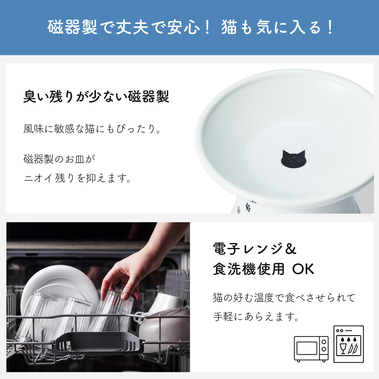 そして「電子レンジ」「食洗機」の使用可能で飼い主さんにも優しい商品です。