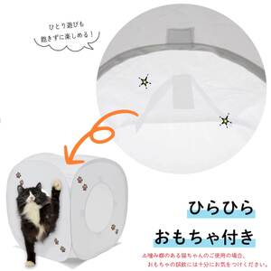 キューブ内側の天井には、猫の遊び心をくすぐる、布製のひらひらのおもちゃがついています。