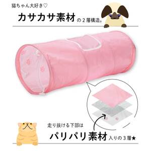 猫が飛び込んだり駆け抜けたりするたびにカシャカシャと音がして、毎日飽きずに遊んでくれること間違いなし。