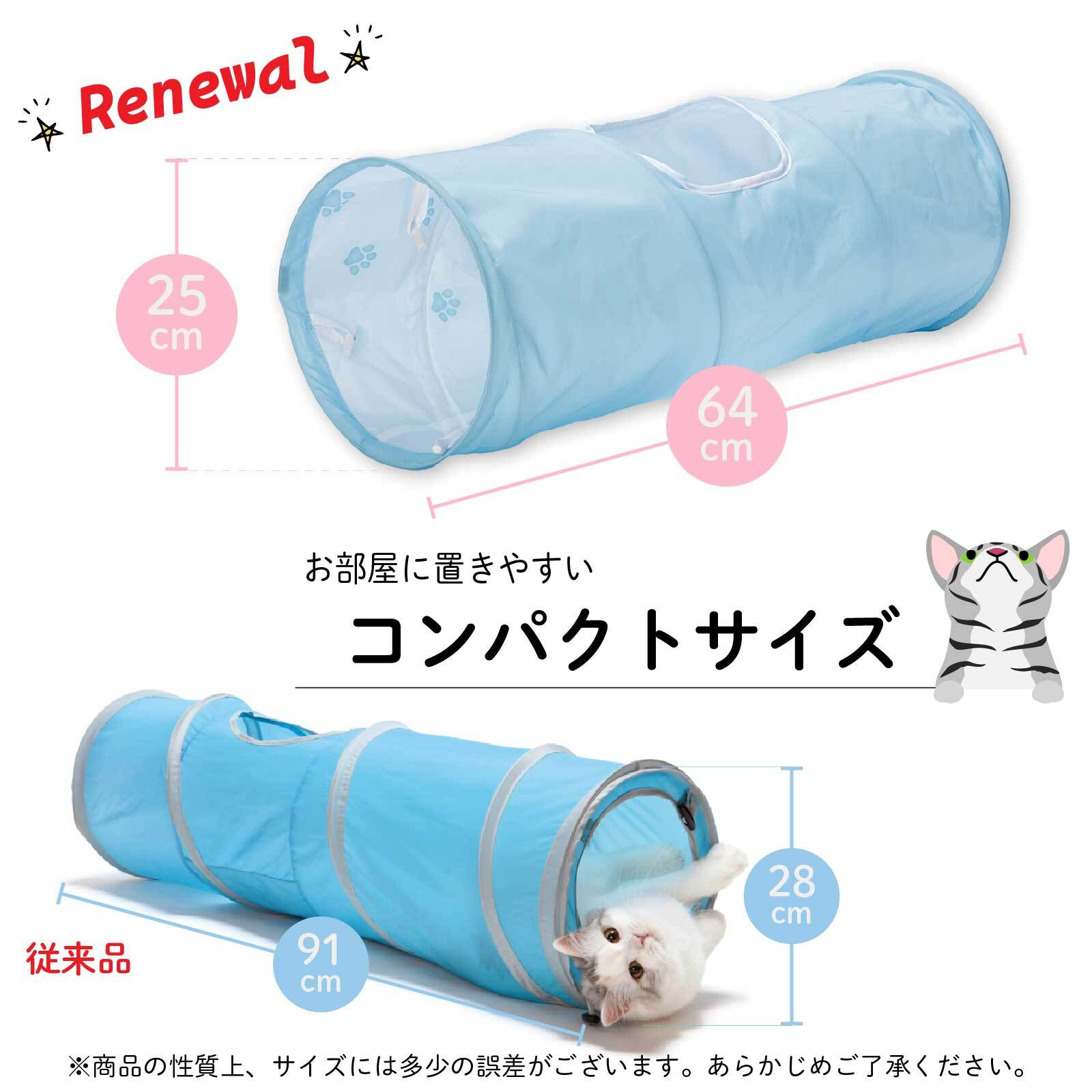 猫が大好きなトンネルをいつも出しておいてあげたい、というお客様の声からサイズをリニューアル。