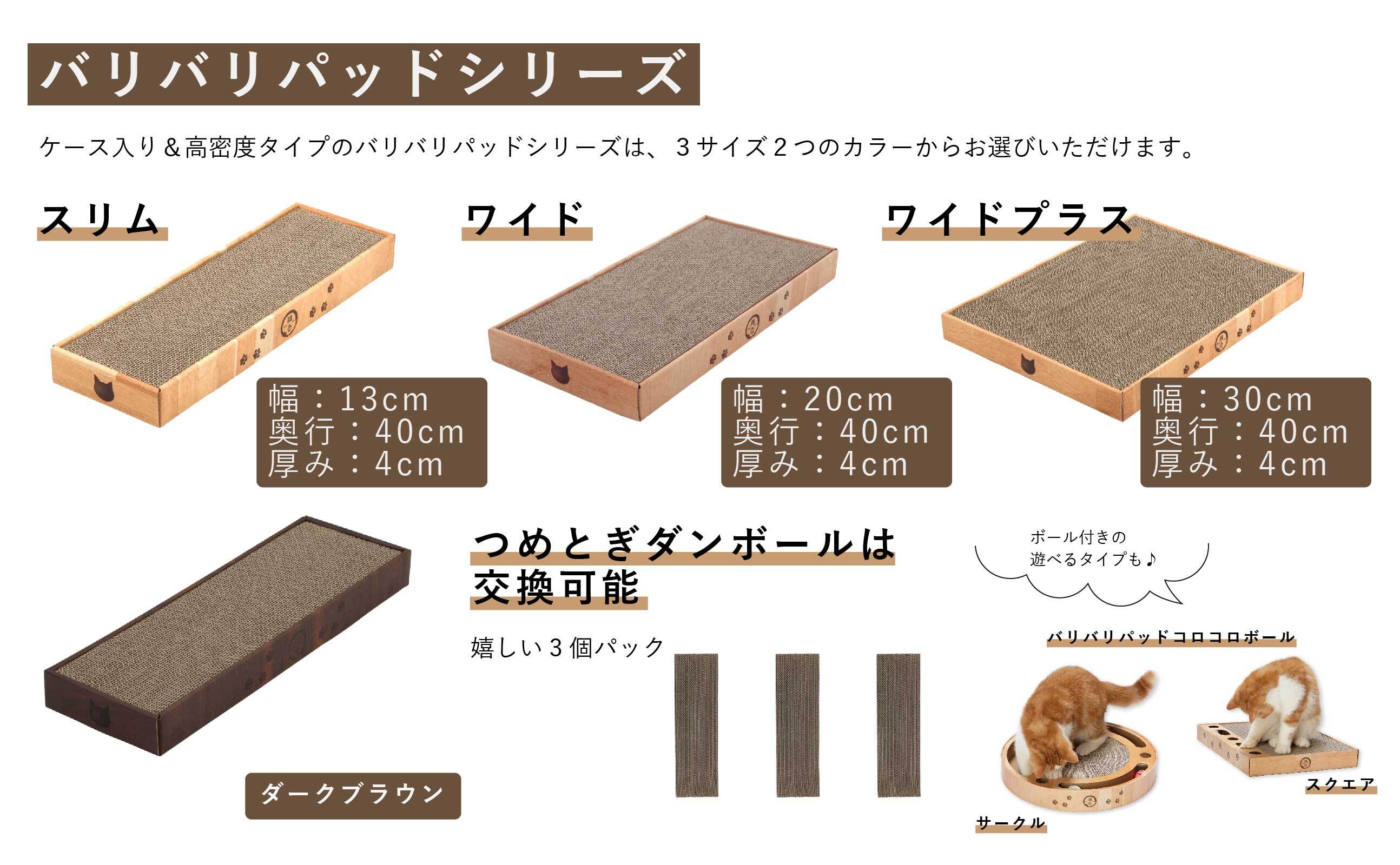 バリバリパッド交換用つめとぎは、そのままでも使用できますか?可能ですが、ダンボールのとぎくずが落ちるため、「バリバリパッド(ライトブラウン/ダークブラウン)」のケースに入れてお使いになることをおすすめします。