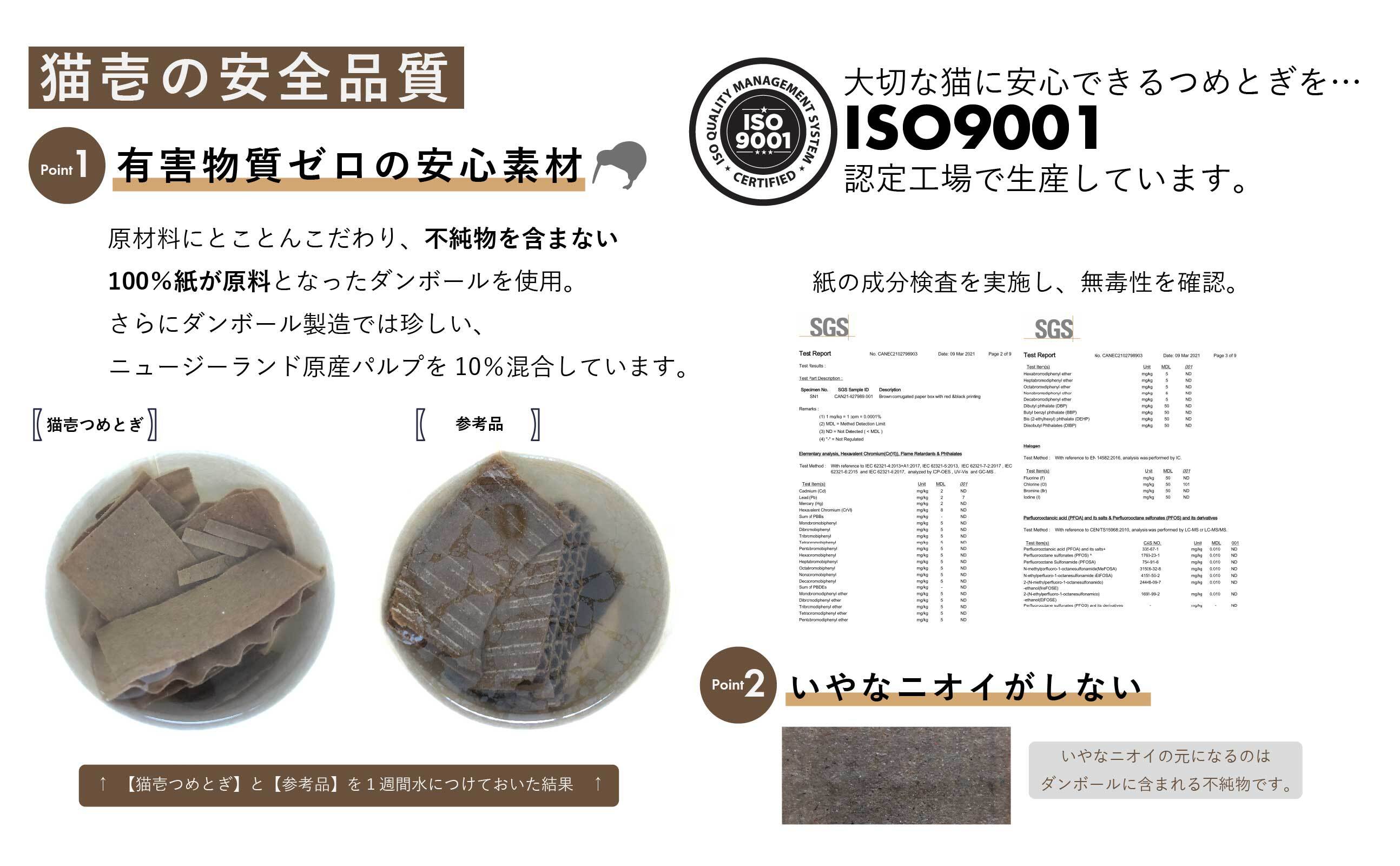猫壱の安心品質つめとぎは、ISO認定工場で生産されています。