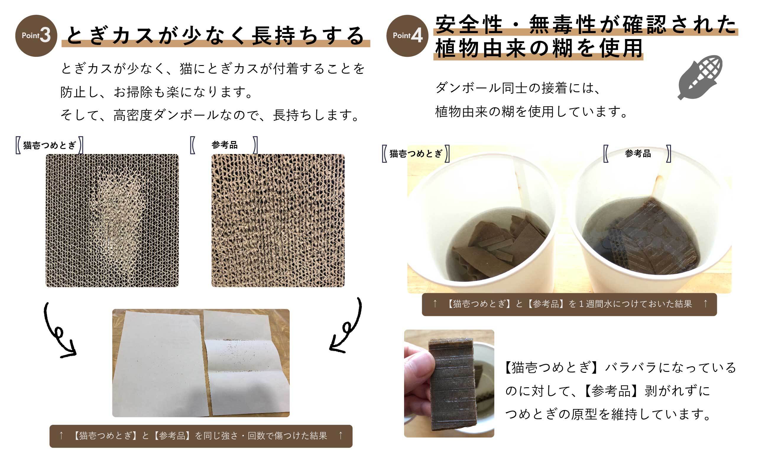 猫壱の他のつめとぎと比較して高密度タイプの段ボールを採用。