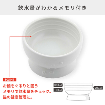 350ml入るボウルで、多頭飼育のお家でもみんながたっぷりお水を飲むことができます。