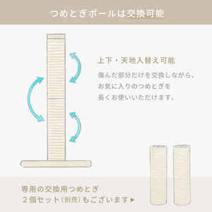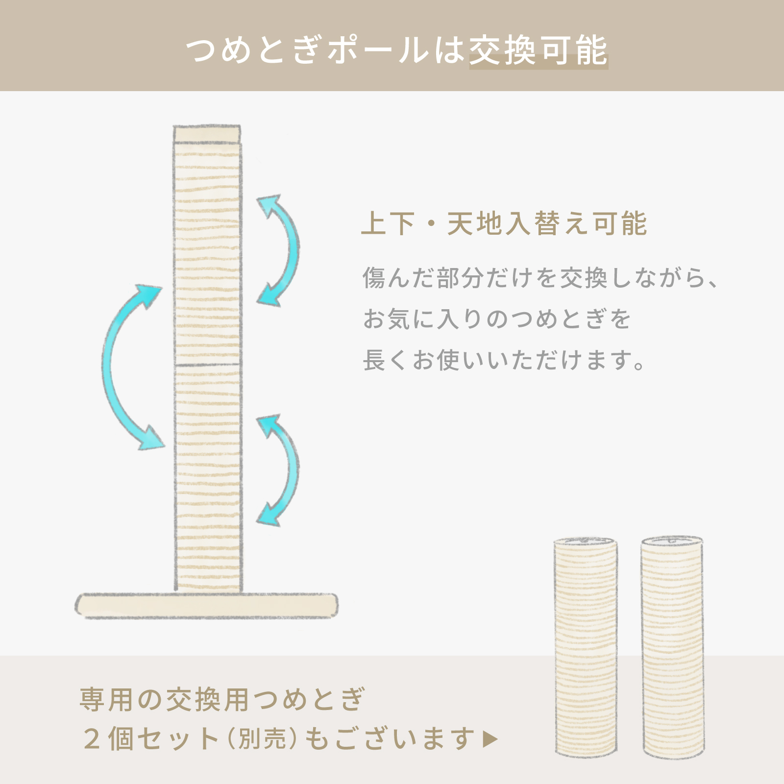 2本のつめとぎポールは上下・天地を入れ替えて交換が可能です。