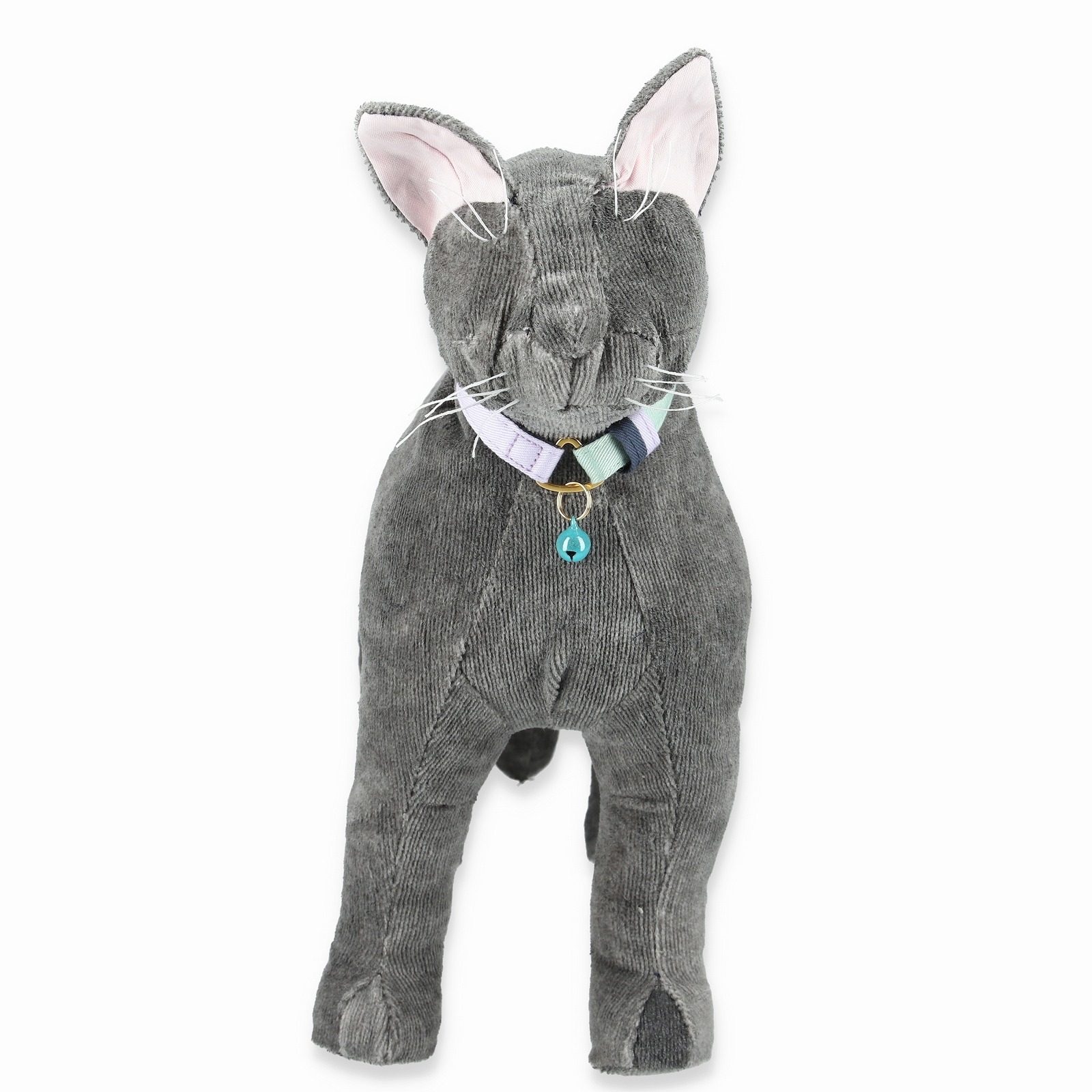 首輪本体(ひも部分)は、表地と裏地の色を変えています。また、一部のアイテムは表地の右側と左側の色が異なるデザインなので、左右で異なる愛猫の横顔・柄を楽しむように首輪もお楽しみいただけます。