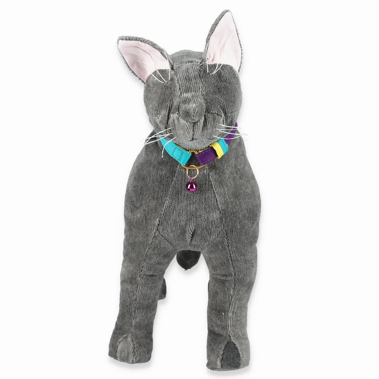 首輪本体(ひも部分)は、表地と裏地の色を変えています。また、一部のアイテムは表地の右側と左側の色が異なるデザインなので、左右で異なる愛猫の横顔・柄を楽しむように首輪もお楽しみいただけます。
