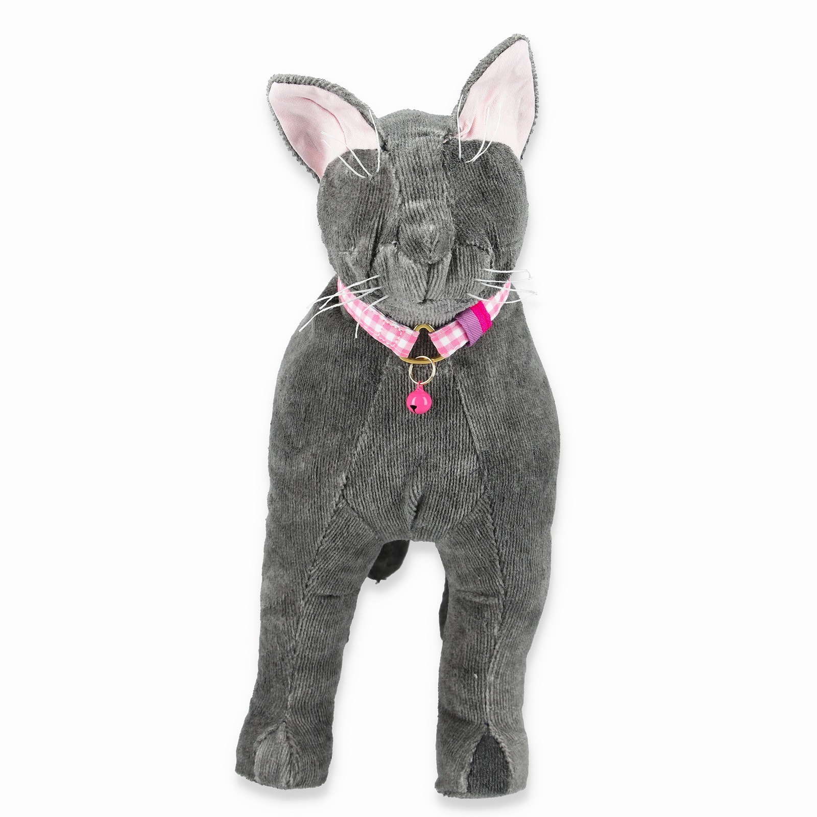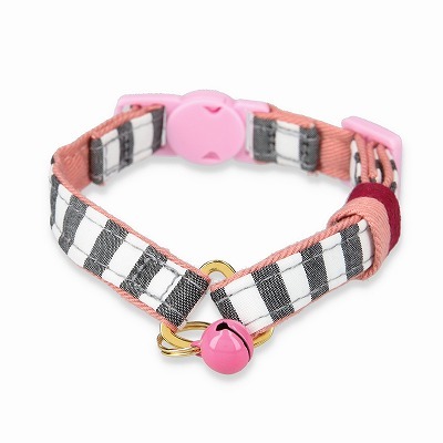 ねこにやさしいVネック首輪 ギンガムチェック(ピンク)