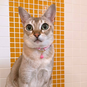 首輪本体(ひも部分)は、表地と裏地の色を変えています。また、一部のアイテムは表地の右側と左側の色が異なるデザインなので、左右で異なる愛猫の横顔・柄を楽しむように首輪もお楽しみいただけます。