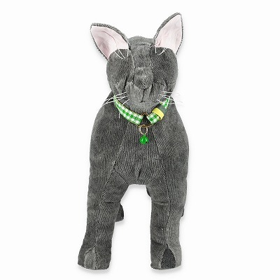 ねこにやさしいVネック首輪 ギンガムチェック(イエローグリーン)
