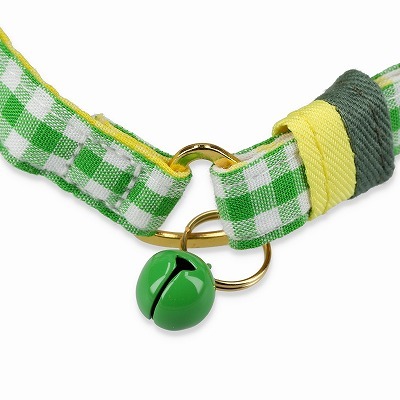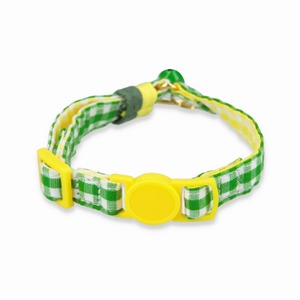 品名 ねこにやさしいVネック首輪 ギンガムチェック(イエローグリーン)