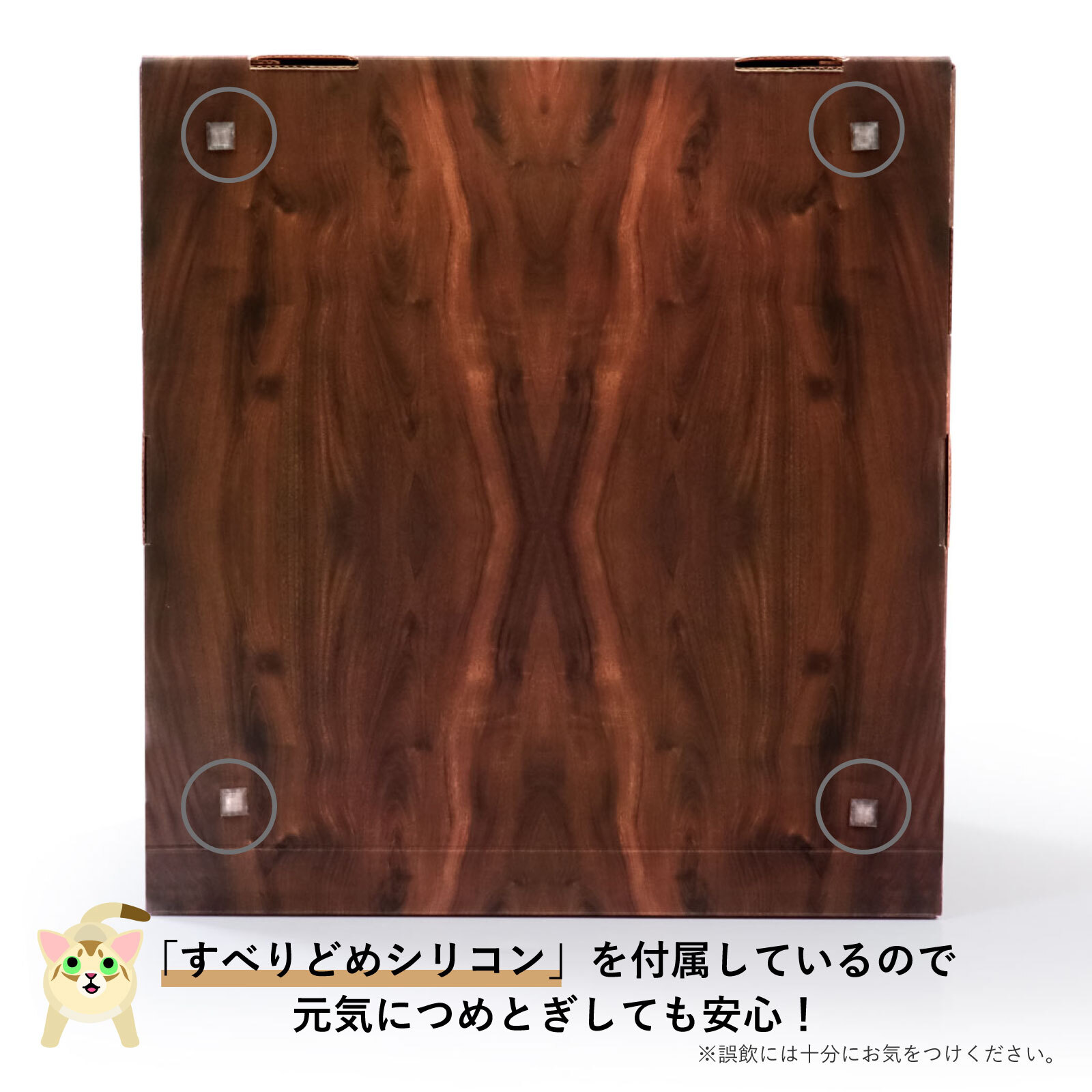 底面の4角に貼り付けて使えるすべりどめシリコンを付属しています。