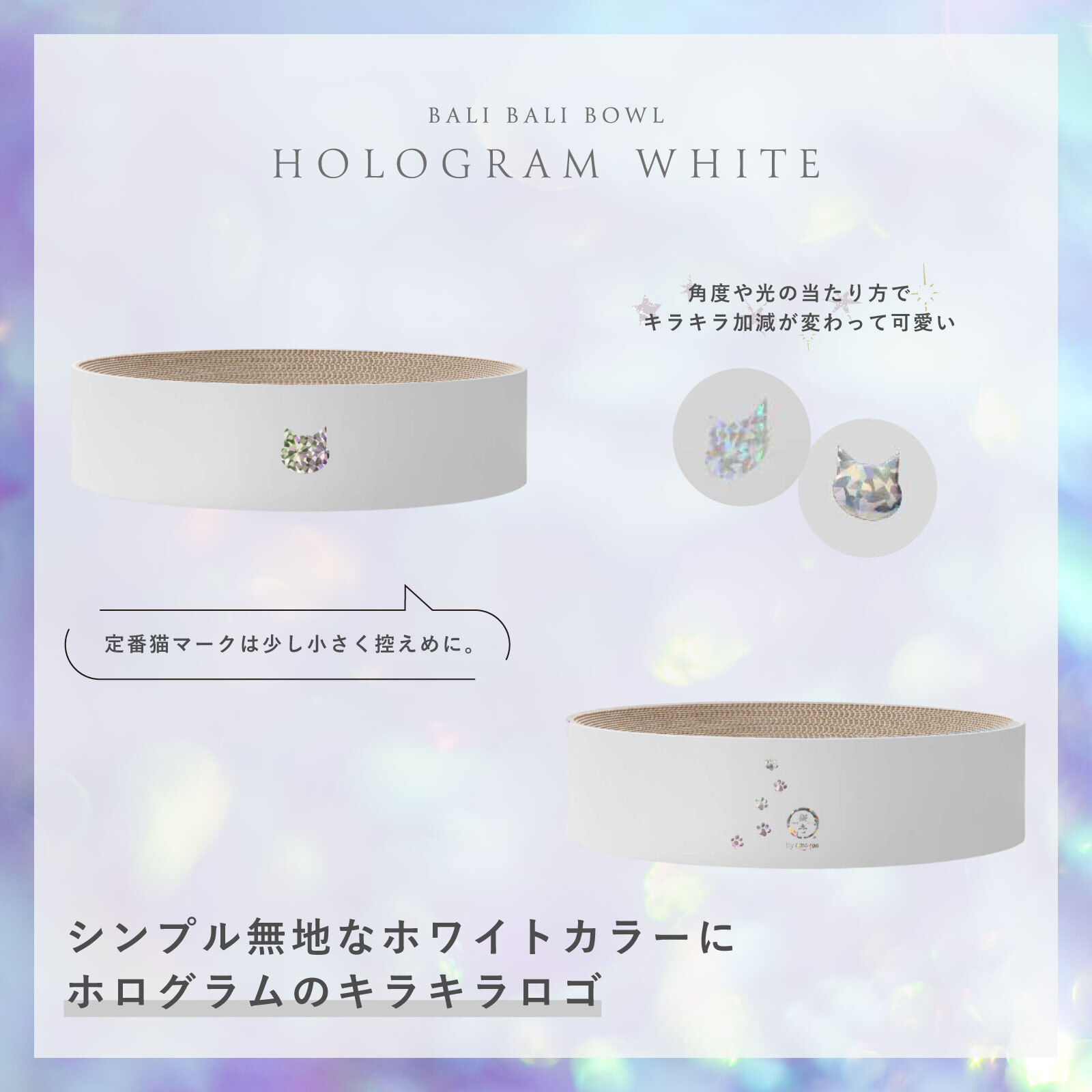 シンプル無地なホワイトカラーにホログラムのキラキラロゴを