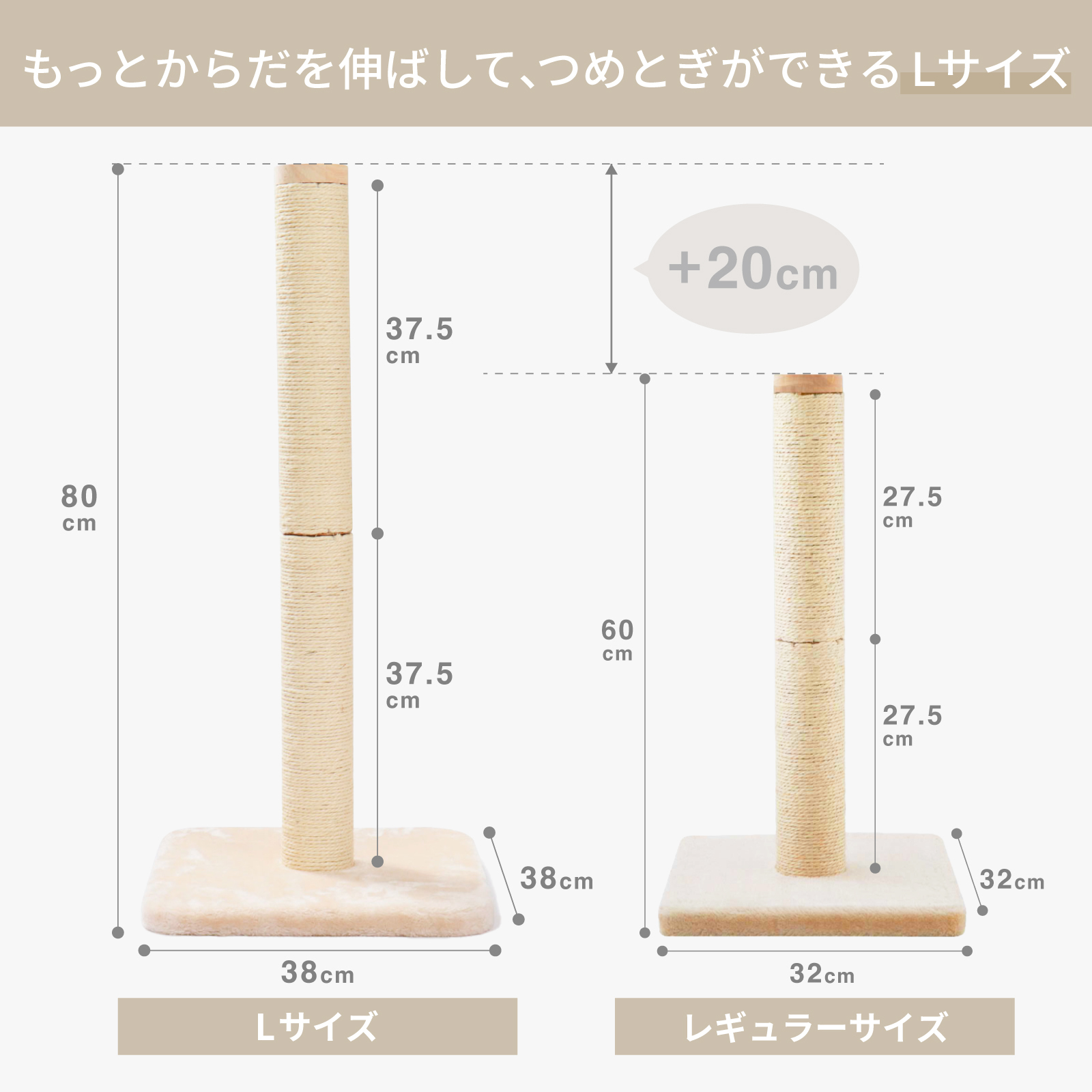 高さ80cmのLサイズは、レギュラーサイズよりももっとからだを伸ばしてつめとぎができるサイズ。