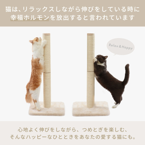 80cmの高さのつめとぎポールで心地よく伸びをしながら、つめとぎを楽しむ、そんなハッピーなひとときをあなたの愛する猫にも。