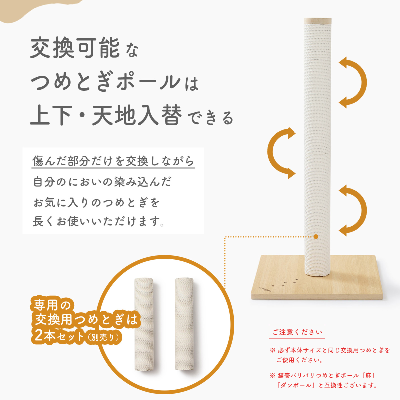 2本のつめとぎポールは上下・天地を入れ替えて交換が可能です。