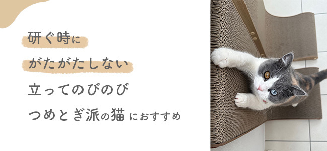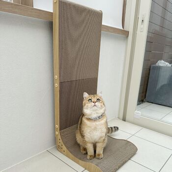 バリバリボードシリーズは、壁などの平坦で広い場所で立ってのびのびつめとぎ派の猫におすすめのL字型つめとぎです。