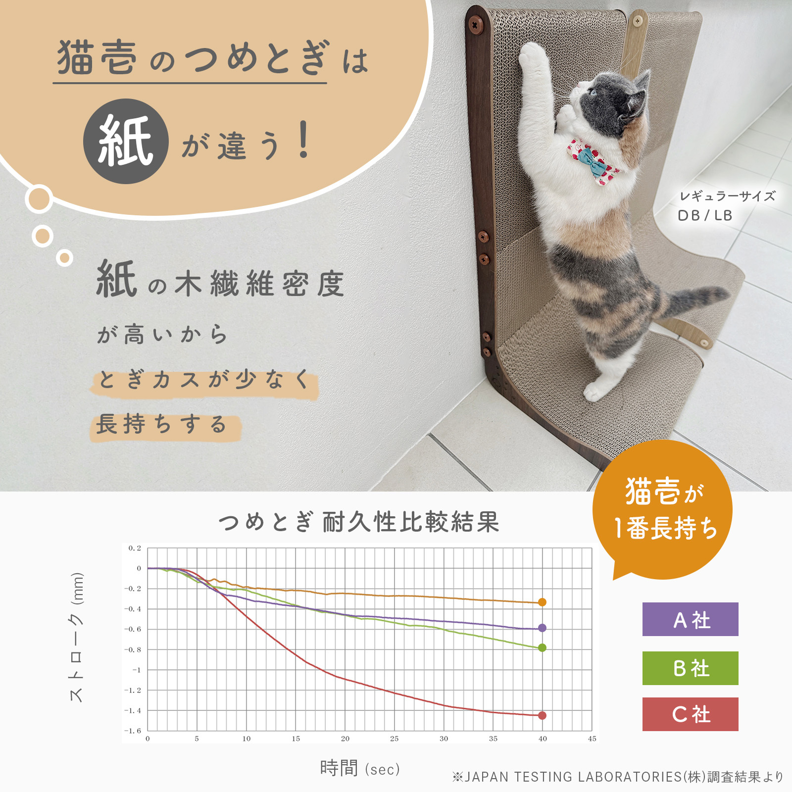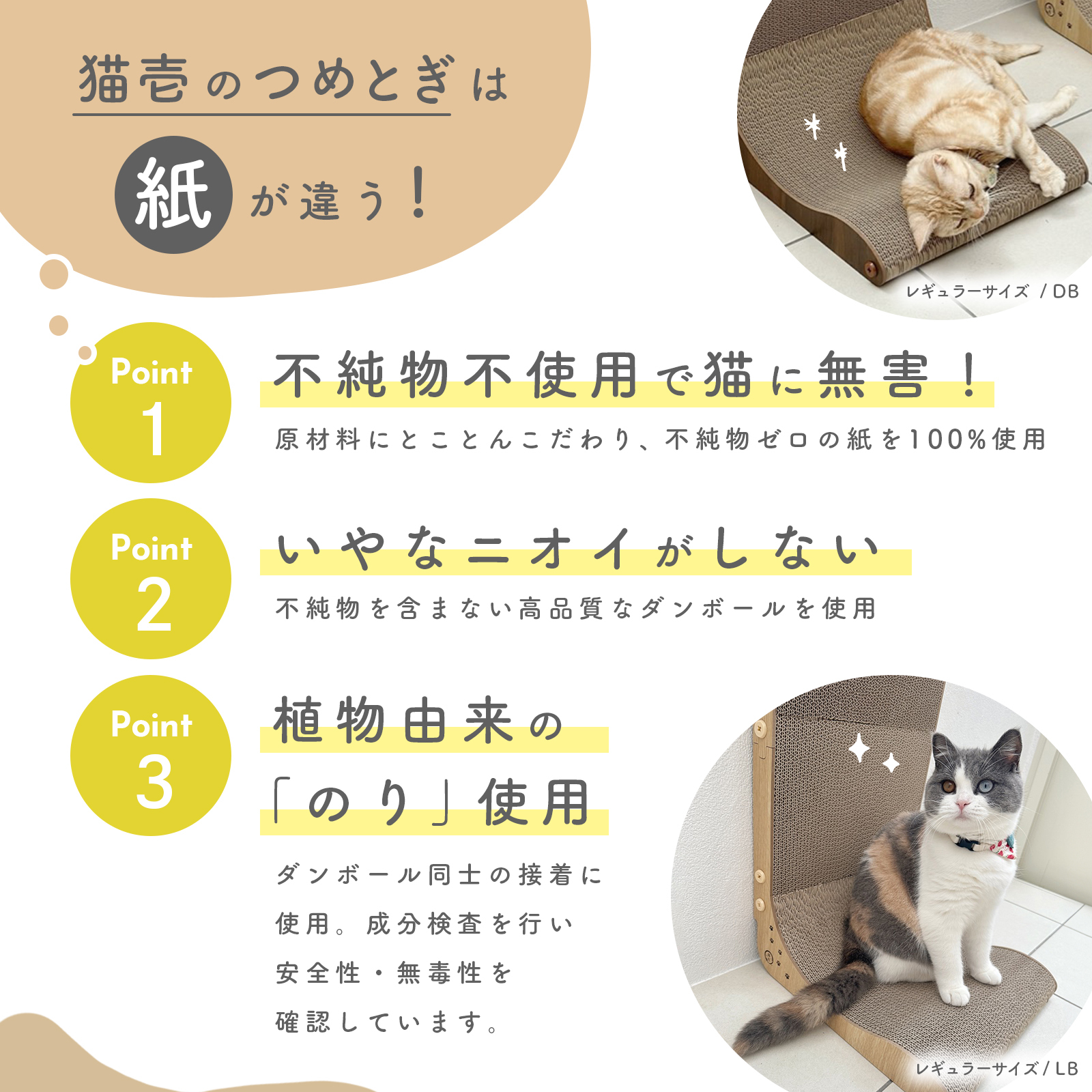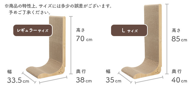 猫の体格やつめとぎスタイルに合わせて「レギュラー」「Lサイズ」の2サイズを揃えています。