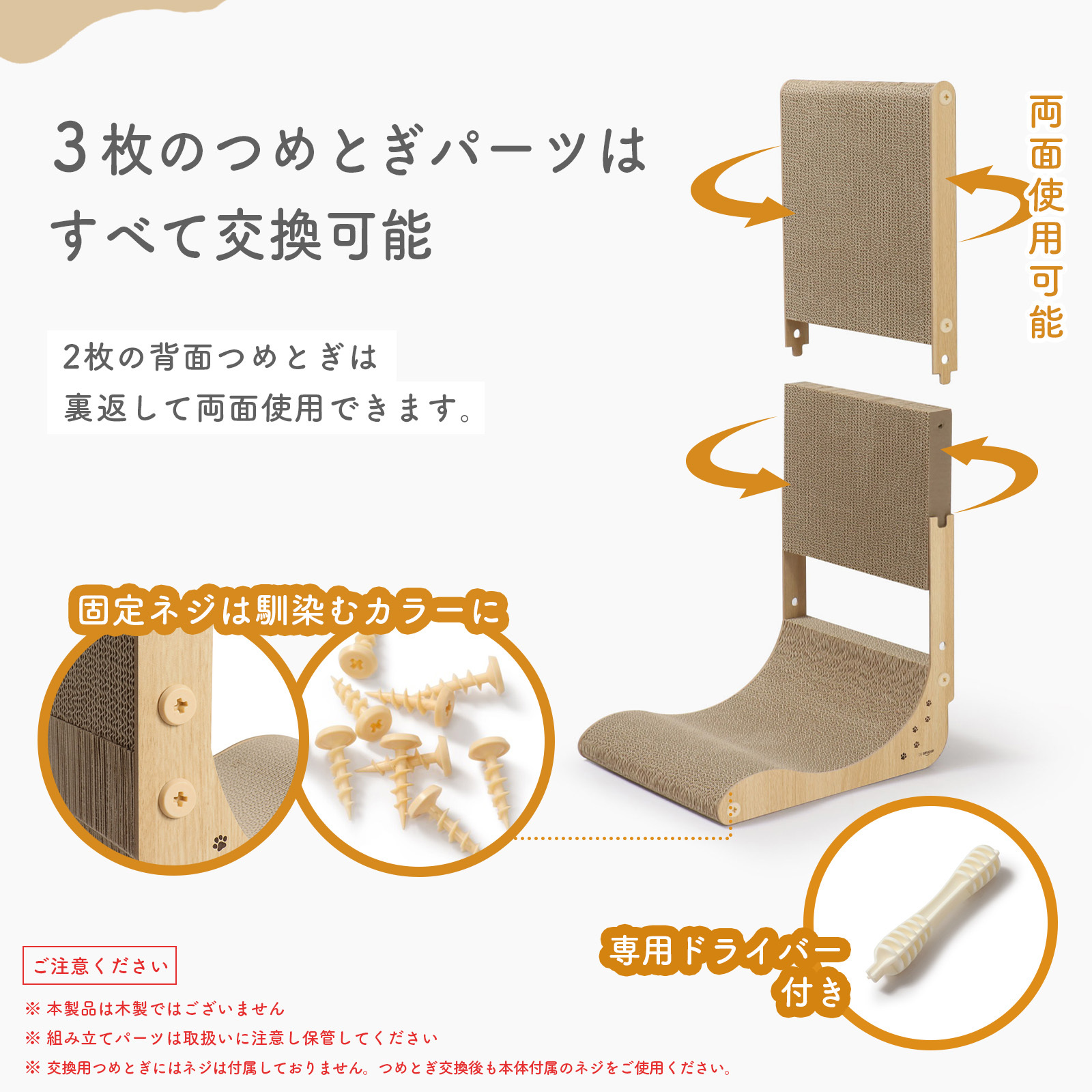 つめとぎパーツは交換可能。背面つめとぎは裏返し使用も可