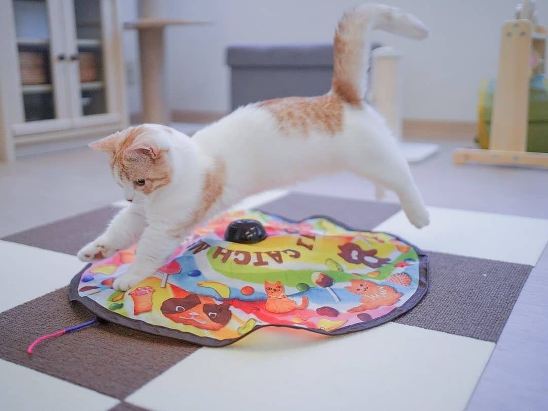 回るたびにヒカリがキラキラ反射+カサカサ音で、猫の狩猟本能を掻き立てます。