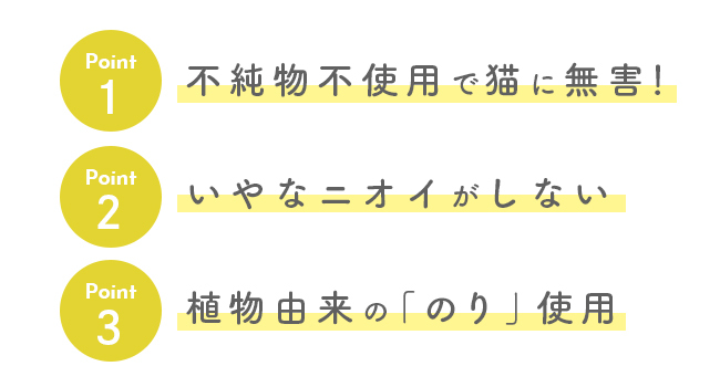 ダンボールを貼り合わせる糊は植物由来の糊を使用し、大切な猫が毎日安心して楽しんでいただけるよう、成分検査を実施し無毒性を確認しています。
