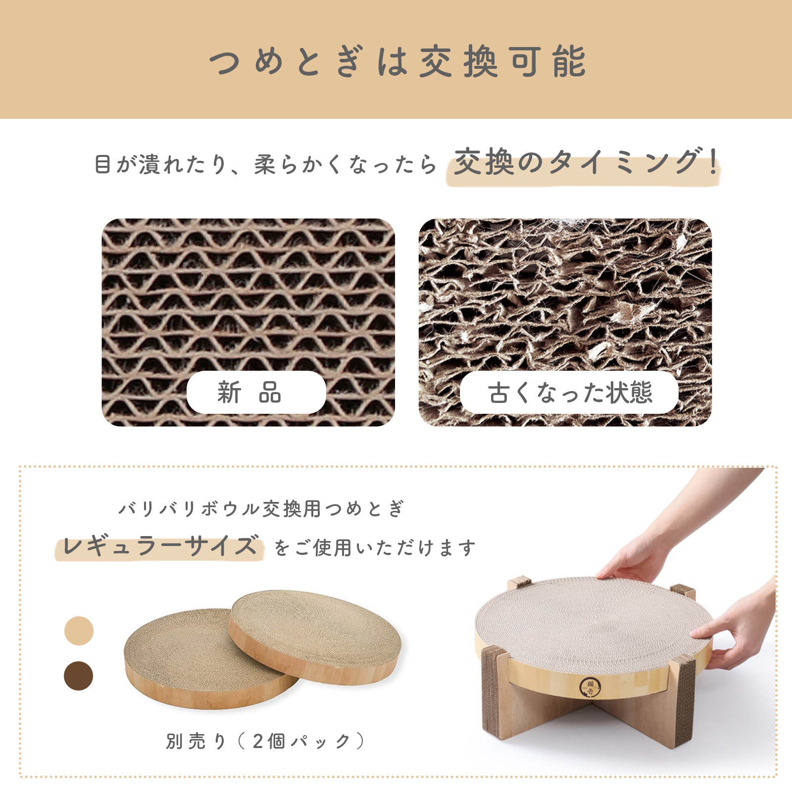 その際、もう片方の手で爪とぎ部分を支えていただけますと、取りやすいかと存じます。 -