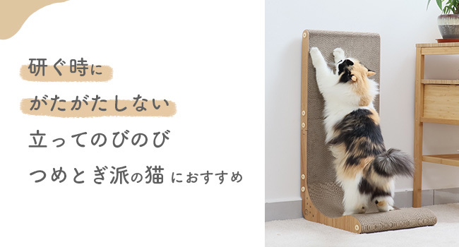 バリバリボードシリーズは、壁などの平坦で広い場所で立ってのびのびつめとぎ派の猫におすすめのL字型つめとぎです。