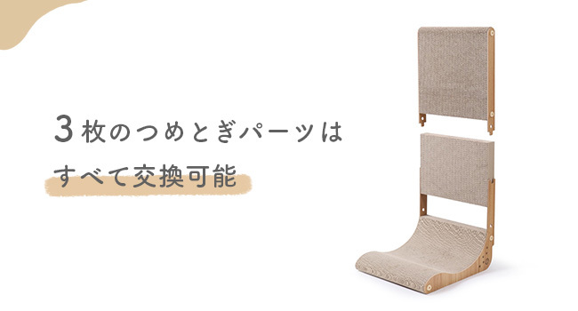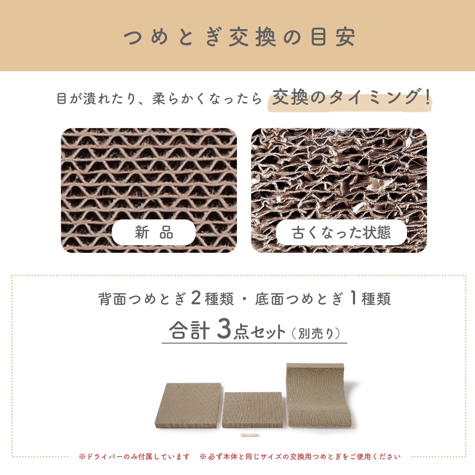 つめとぎパーツは交換可能でお気に入りのつめとぎを長くお使いいただけます。