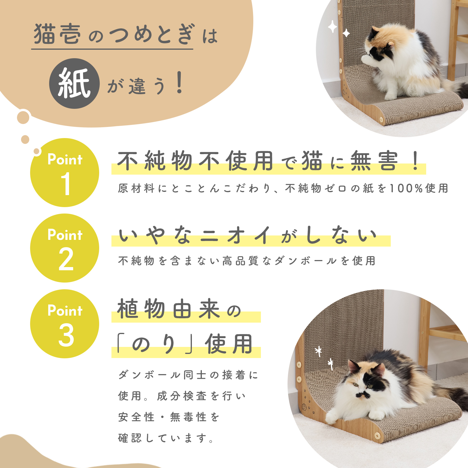 原材料にとことんこだわることで、猫に無害でいやなニオイがしない高品質なダンボールを使用しています。