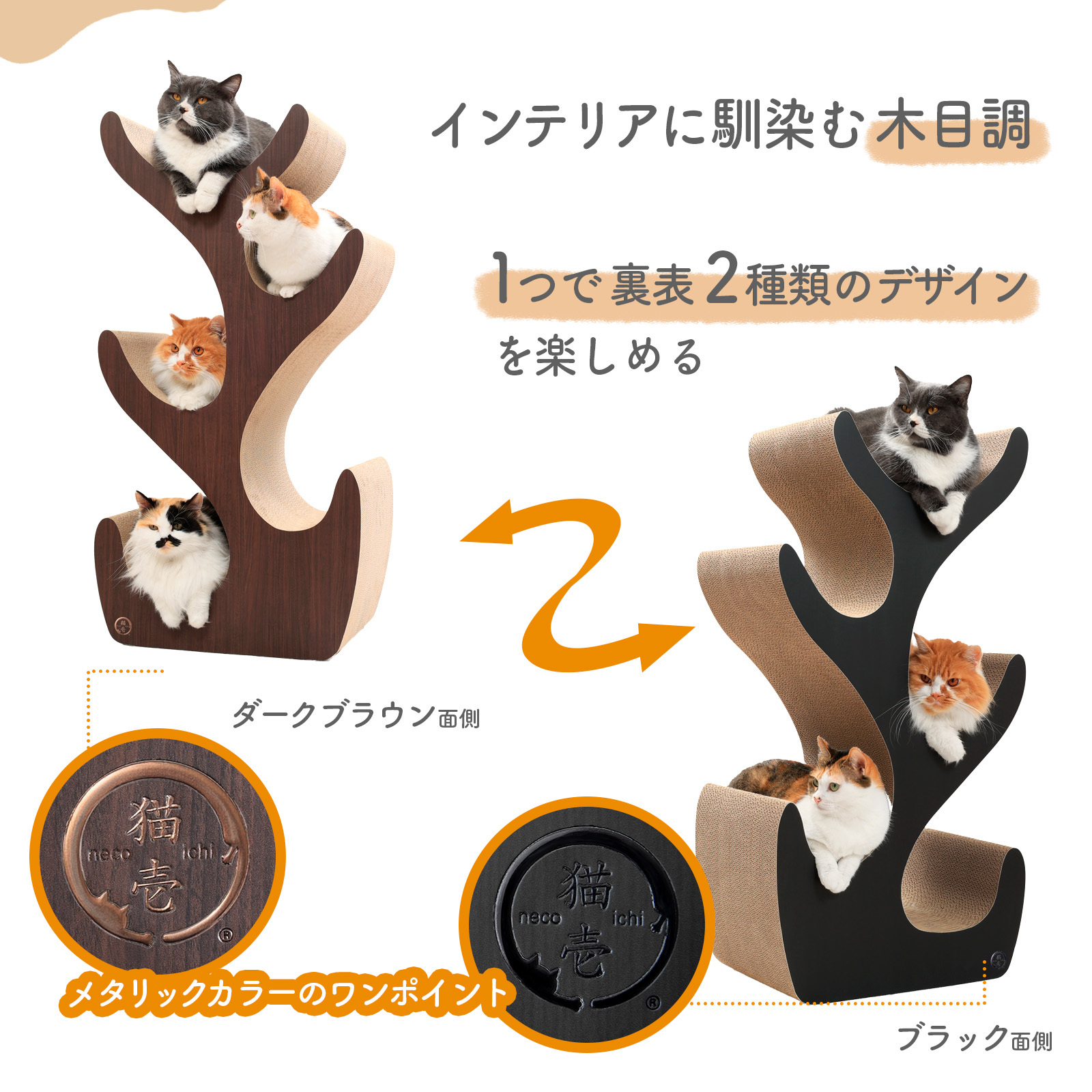 キャットツリーは片面ずつデザインを変えています。