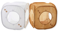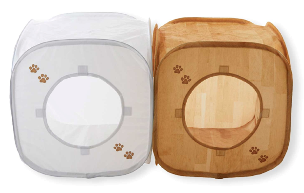猫壱の人気おもちゃ「キャットプレイキューブ」の透明バージョン!猫が大好きなカシャカシャのオーロラフィルムを一部採用したキューブ型おもちゃです。猫が飛び込んたり、駆け抜けたりするたびに、カシャカシャと音がするので、毎日飽きずに遊んでくれること間違いなし。