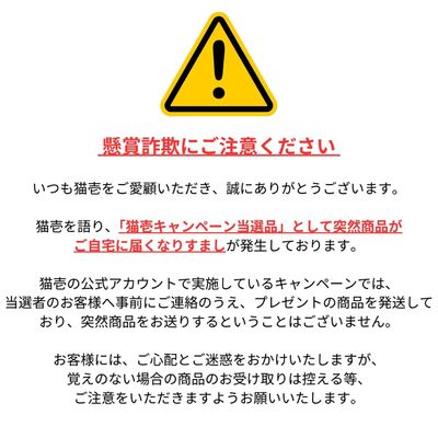 万が一身に覚えのない商品が届いた場合、猫壱カスタマーサポートまでご連絡をお願いいたします。