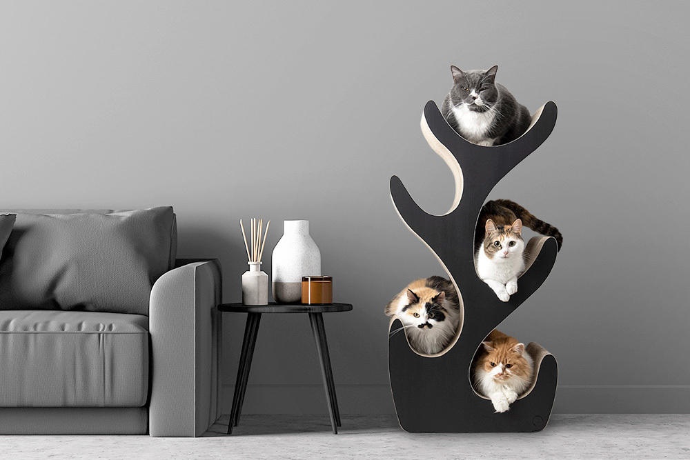 ”猫のなる木”として人気の「キャットツリー」の新色・ダークブラウン&ブラックが登場、